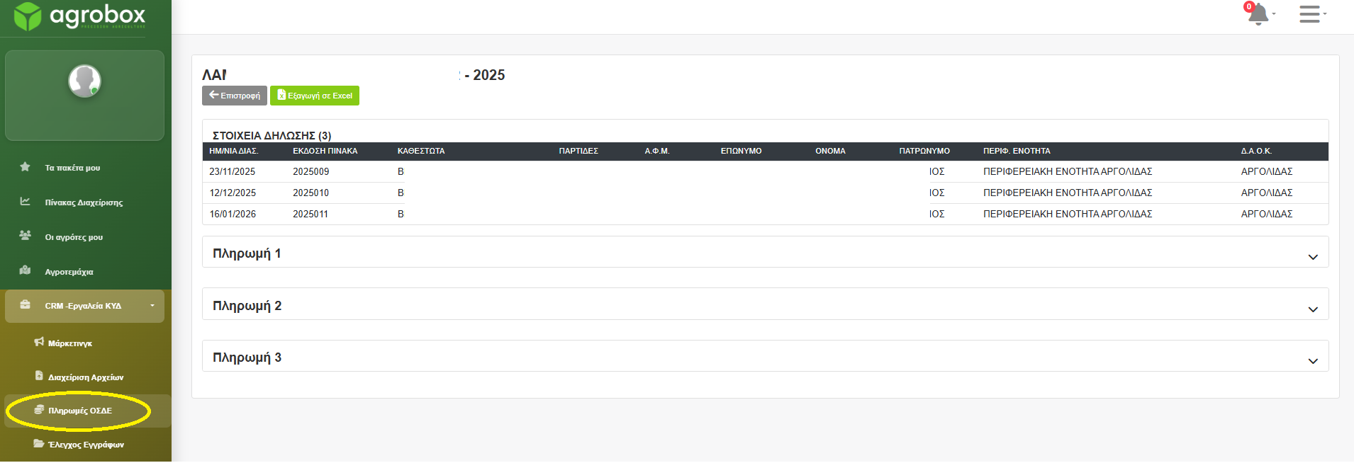 Η νέα καρτέλα ''Πληρωμές ΟΣΔΕ'' περιέχει όλες τις πληροφορίες συγκεντρωτικά οι οποίες αφορούν: